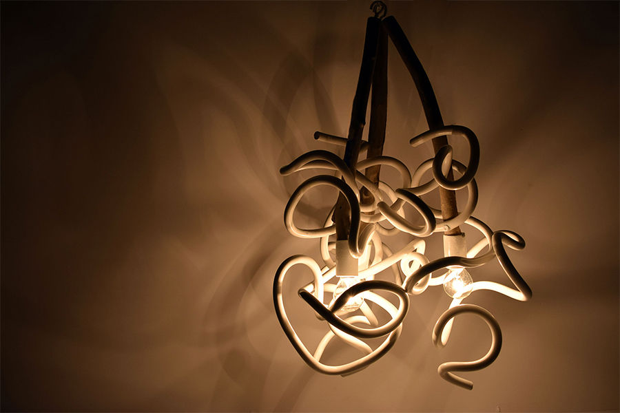 Wire, driftwood, electric bulb, socket, wiring cord